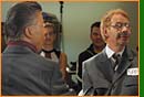 Die Freakstars als Politiker! Um als Star nicht den Anschluss an das Tagesgeschehen zu verlieren, kommt die Band regelmäßig zu Sitzungen zusammen, wo die einzelnen Mitglieder in Form von Rollenspielen die Positionen von politischen Persönlichkeiten vertreten. | ![]() |